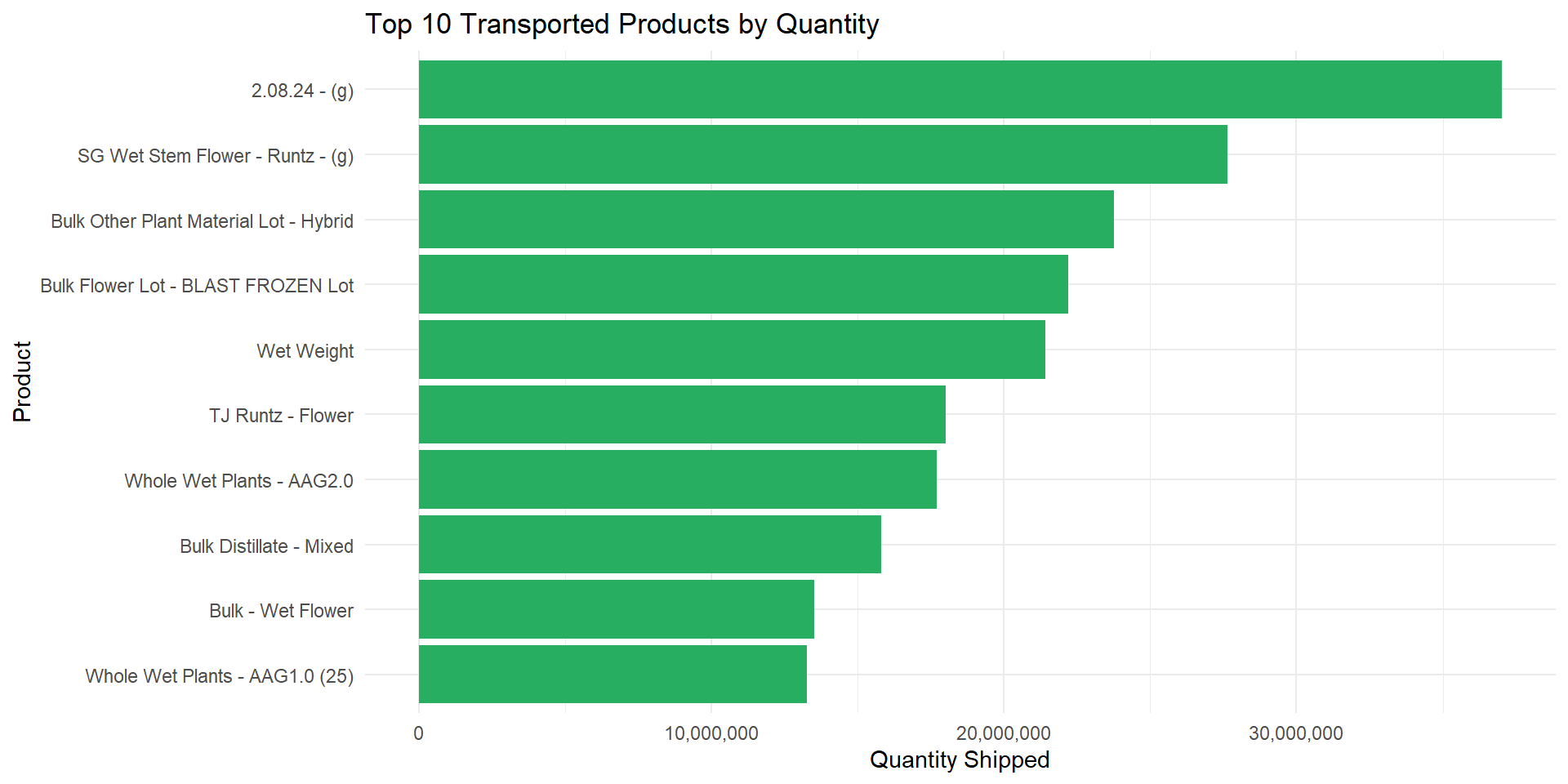 Observation: Washington’s cannabis transport system overwhelmingly moves bulk biomass, not packaged retail-ready goods. This is a hallmark of vertically integrated models and in-state processing requirements.